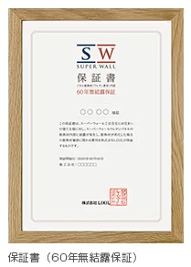 この高い防湿・耐久性能が評価され、LIXILでは、瑕疵保証(10年)では対象外となる断熱材内部の結露による劣化について、60年間保証※しています。