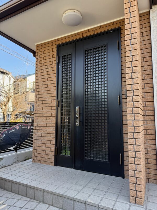 以前に外装リフォームされたI様邸ですが玄関ドアのハンドル部分に不具合がありワンデーリフォームで入替工事をさせて頂きました。